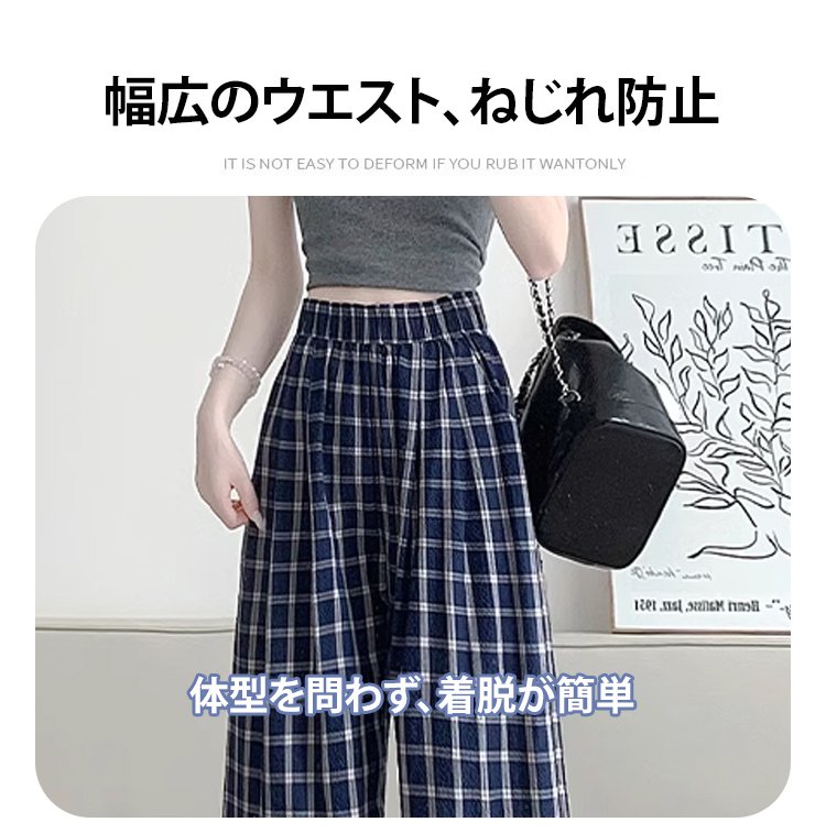 ハイウエストラフ感チェック柄ワイドパンツ